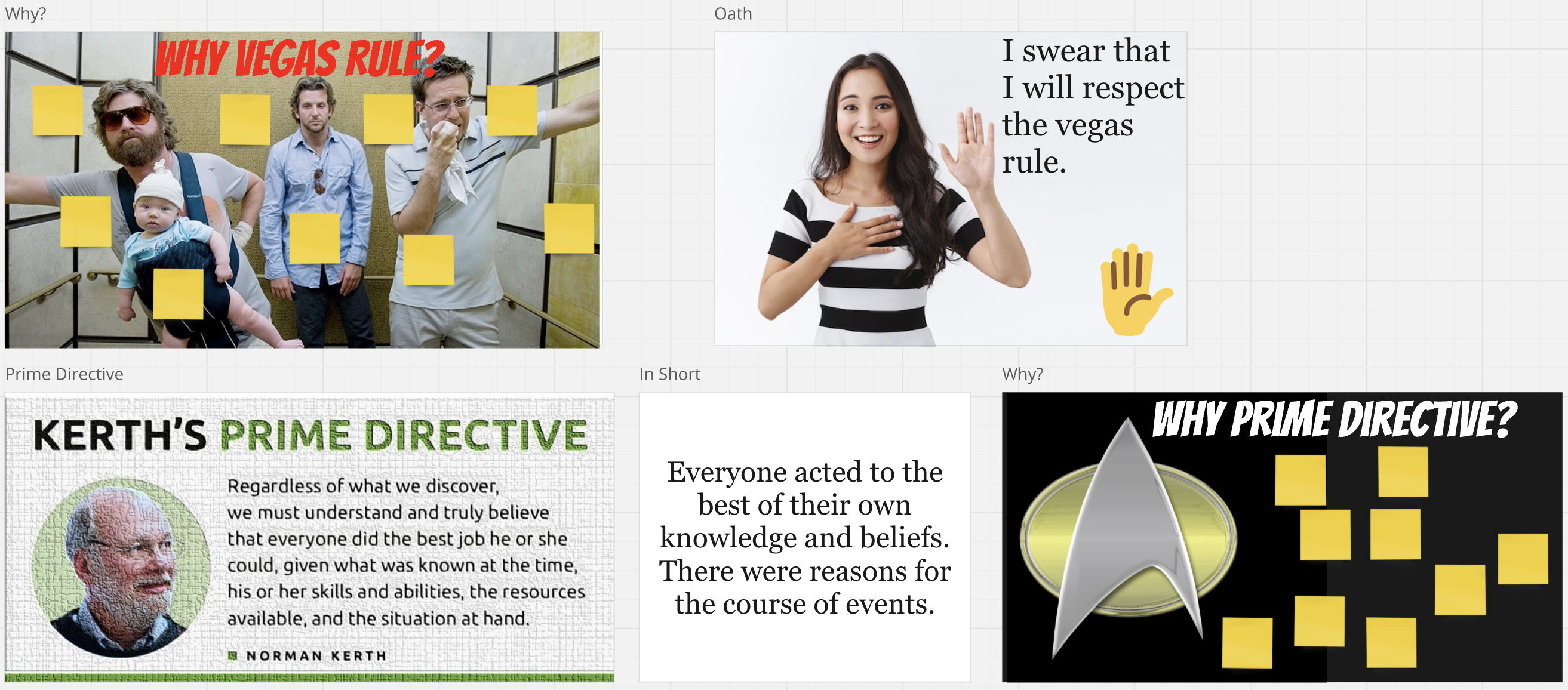 Zwei Methoden, die all diese Werte fördern, sind die Vegas Regel und die Prime Directive (bzw. die Erste Direktive).